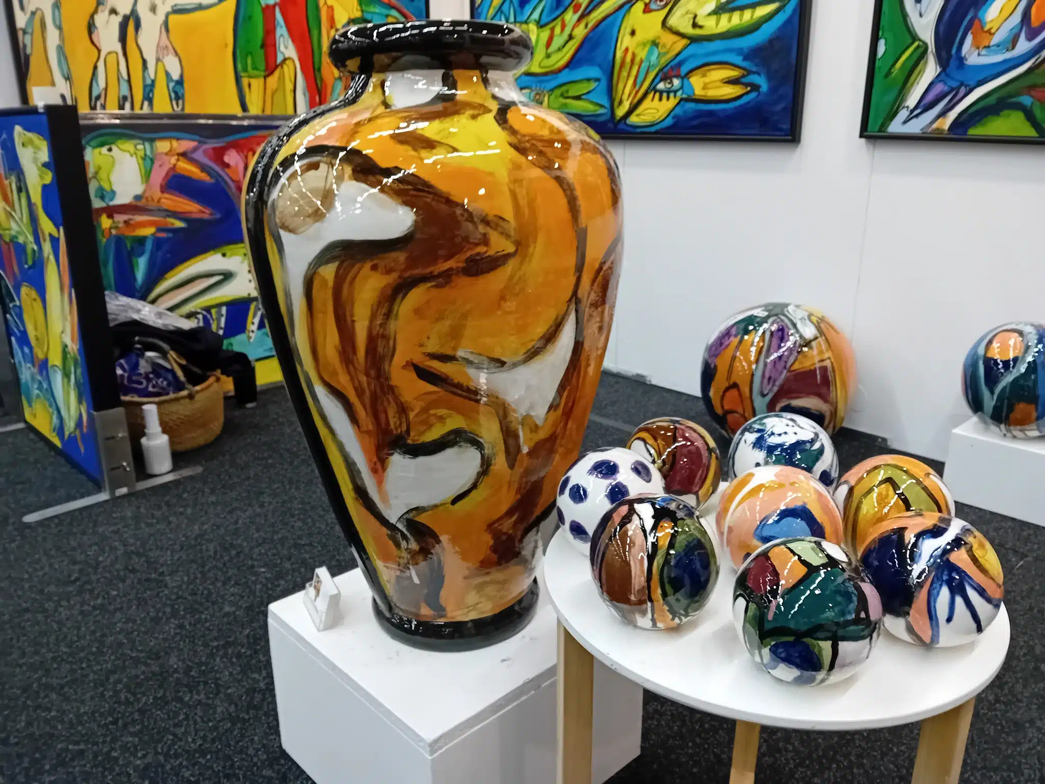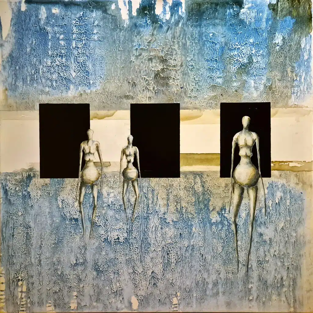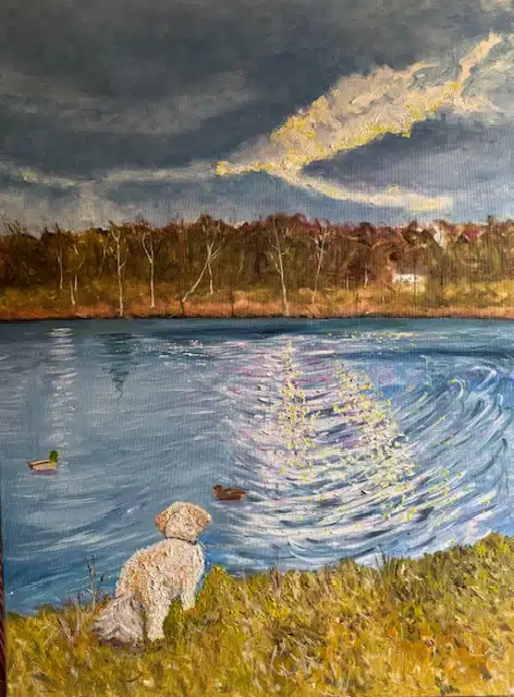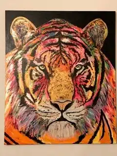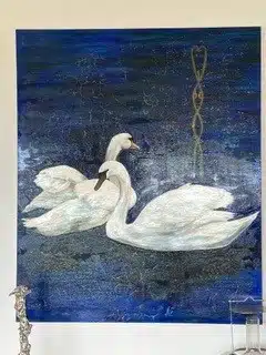 Jeg har malet de sidste 25 år – primært i akryl. Jeg maler primært større billeder – 80 x 80 og opefter. Når jeg ser tilbage, så maler jeg ofte hel eller halvfigurative billeder med dyr – og gerne koloristiske.