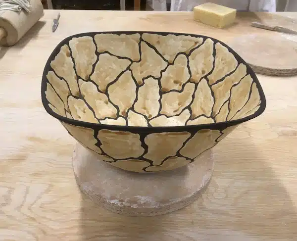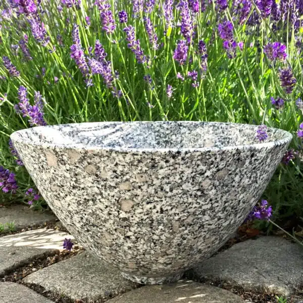 I 2014 begyndte jeg at bearbejde granit, som jeg i dag hovedsageligt former til skåle og fade. Alt mit arbejde udføres med en vinkelsliber på øjemål, derfor vil to skåle aldrig være ens. Processen er voldsomt larmede, støvende og tidskrævende. Jeg elsker at følge granittens forvandling fra den rå ubearbejdede struktur til den blankpolerede elegance, som kendetegner mine værker.
