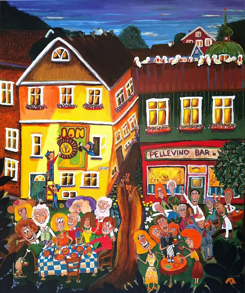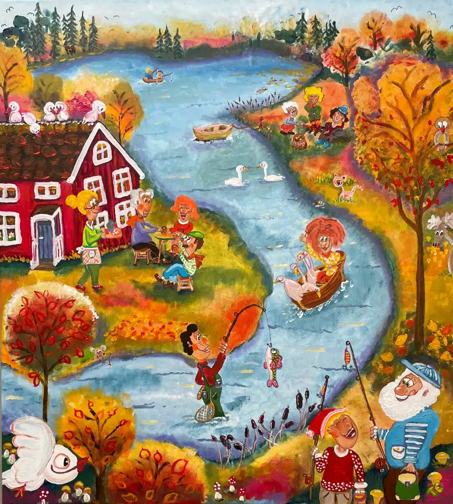 Jeg synes om det ofte glade og legende udtryk i naivismen, og jeg kan også godt lide de stærke farver. Jeg elsker at male og synes det er ekstra herligt, når mine malerier får publikum til at smile. Det gode humør ligger til mig og det er sjældent at I finder en af mine figurer som ikke er i højt humør. Min inspiration kommer oftest fra visuelle oplevelser fra min svenske opvækst samt mit liv i København. Min teknik er stærkt inspireret af den svenske naivistiske stil, og jeg maler oftest med akryl på bomuldslærred.
