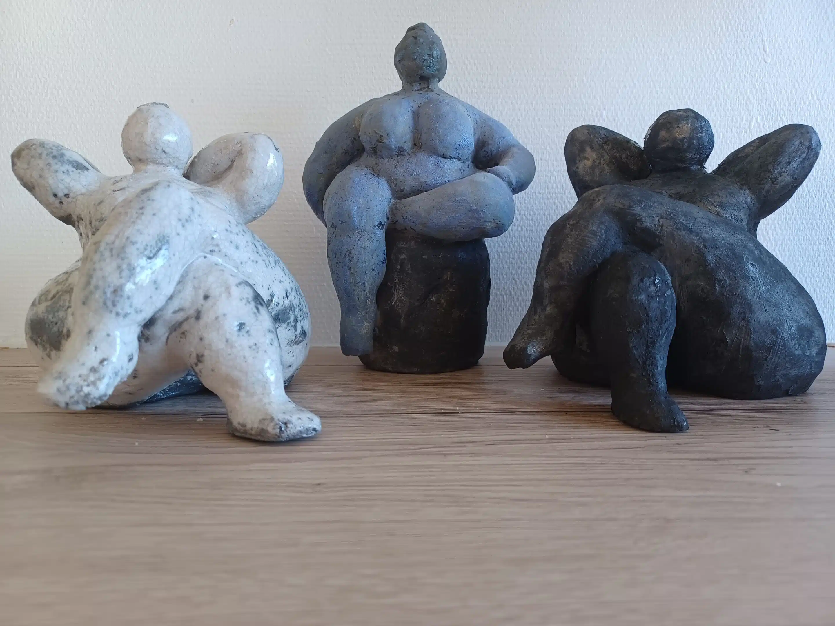 Mine inspirationer bliver hentet fra mine oplevelser i hverdagen, når jeg færdiggør projektet, bliver de for glødet i en el ovn, nogle bliver glaseret og bliver igen brændt. Jeg arbejder en del i RAKU, der er en Japansk brændeteknik, igen for glødes de i en elovn og efterfølgende med eller uden glasur brændes under åbenild i det fri. Det er vigtigt at mine skulpturer opbygges i runde og spændstige former, som udstråler tryghed, kærlighed og harmoni.