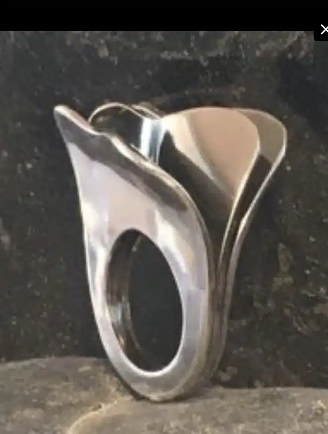 Sølv er fascinerende at forme og inviterer mig til leg med både stramme linjer og bløde kurver. Dette resulterer ofte i et både kraftfuldt og feminint udtryk. Arbejdsprocessen er smedning, lodning og støbning. Jeg er især optaget af formgivningen. Den klassisk modernistiske stil. Arbejdet med materialet er spændende – hvad kan materialet, og hvor fører det mig hen… En armring kan også fremstå som en skulptur.