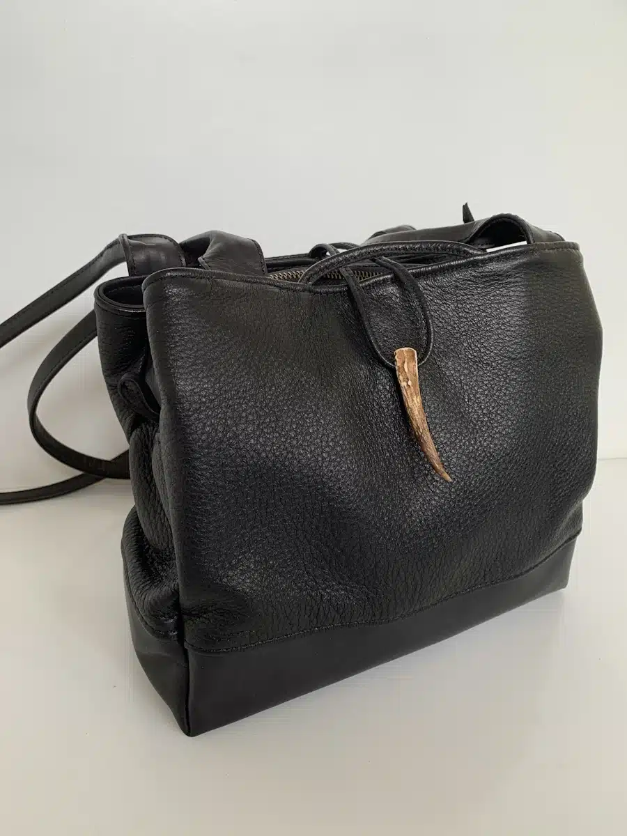 Jeg syr i skind og læder – jakker, tasker og bælter. Alle produkter bliver håndlavet på bestilling. Det betyder, at du kan få produktet tilpasset, så det lever op til netop dine ønsker. Taskerne er i elgskind eller i en kombination af elg- og okseskind – de bliver alle smukkere og om muligt endnu blødere i brug.