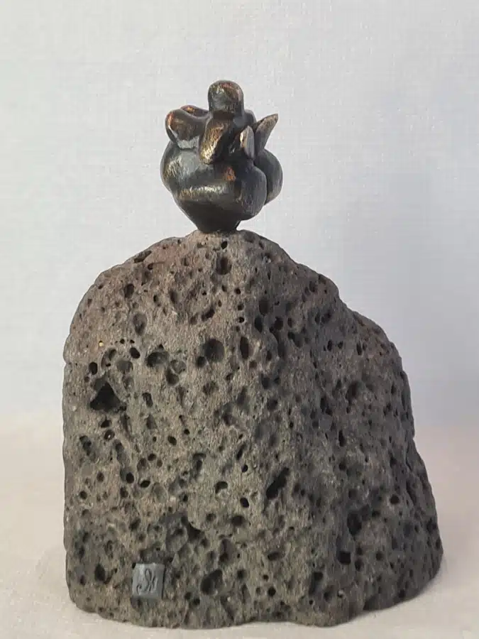 Jeg er skulptør og skaber små skulpturer i bronze som placeres på sten. Sten og bronze er sammen små historier om liv og vækst på godt og ondt. Og om det at finde sin egen plads på jorden. Alle mine skulpturer er massivstøbte, og jeg udfører selv alle trin i processen. Fra forlæg, støbning, efterbearbejdning, til at finde og bearbejde sten og udføre endelig montering.