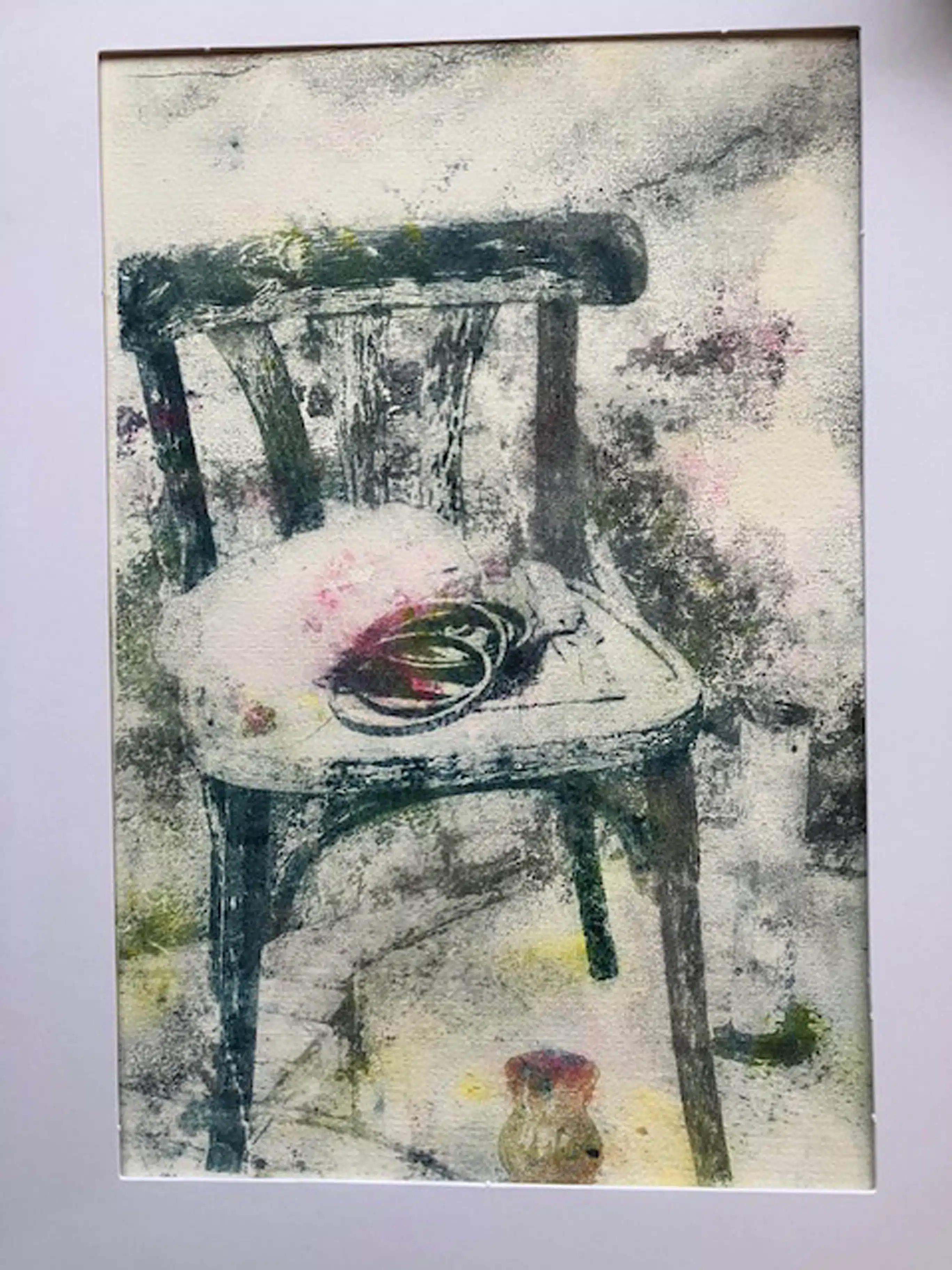 Min proces er meget eksperimenterende, jeg har det bedst, når jeg er i gang med at lære nye metoder og fremgangsmåder. Jeg arbejder blandt andet med mødet mellem vand og vandafvisende, eller det fede og det fedtopløsende. Med mine værker prøver jeg at starte en historie, beskueren forhåbentlig føler sig inviteret til at fortælle færdig. Det er nemlig mellem beskuer og værk det, for mig, er spændende, der sker en samtale som er privat og dybt personlig.